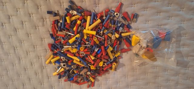 Dettagli del prodottoVendo un lotto di materiale elettrico vario. Sono inclusi diversi connettori e terminali per cavi elettrici, in diversi colori (rosso, blu, giallo). I pezzi sono usati, ma in buone condizioni.