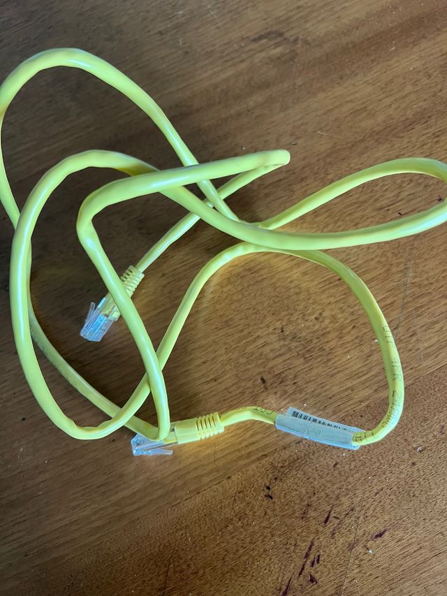 Cavo di rete Ethernet di colore giallo. Lunghezza cm 145 circa. - Connettori RJ45. - Etichetta con codice a barre visibile.