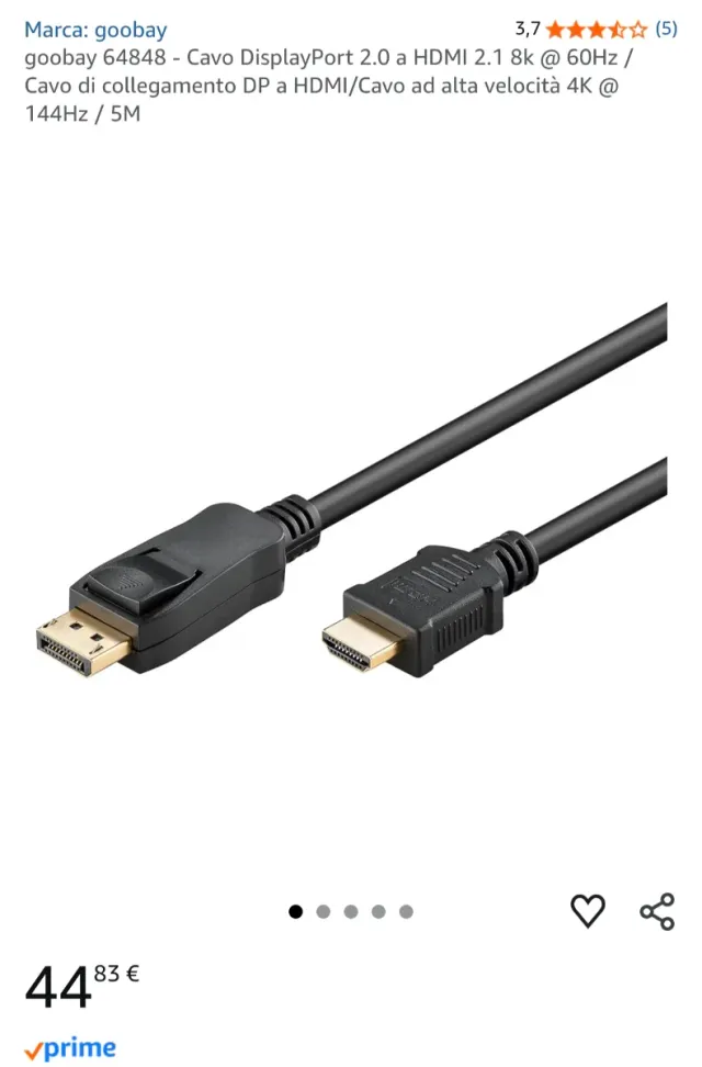 Dettagli del prodottoCavo di collegamento DisplayPort 2.0 a HDMI 2.1.