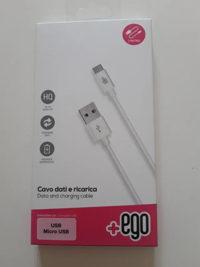 Dettagli del prodottoCavo dati e ricarica di marca ego, lungo 1 metro.