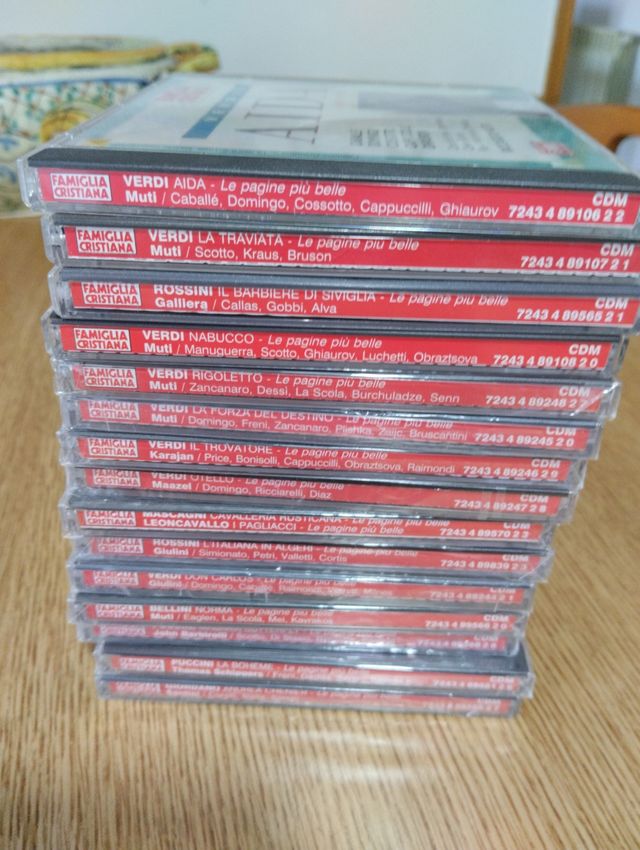 Dettagli del prodottoLotto 15 CD dei migliori musicisti di musica classica. 11 ancora sono incartati, 4 sono aperti.Ecco alcuni titoli: Rigoletto, Norma, Madame Butterfly....... vendibili anche singolarmente a € 2,50. Sono disponibile a darvi gli altri titoli.