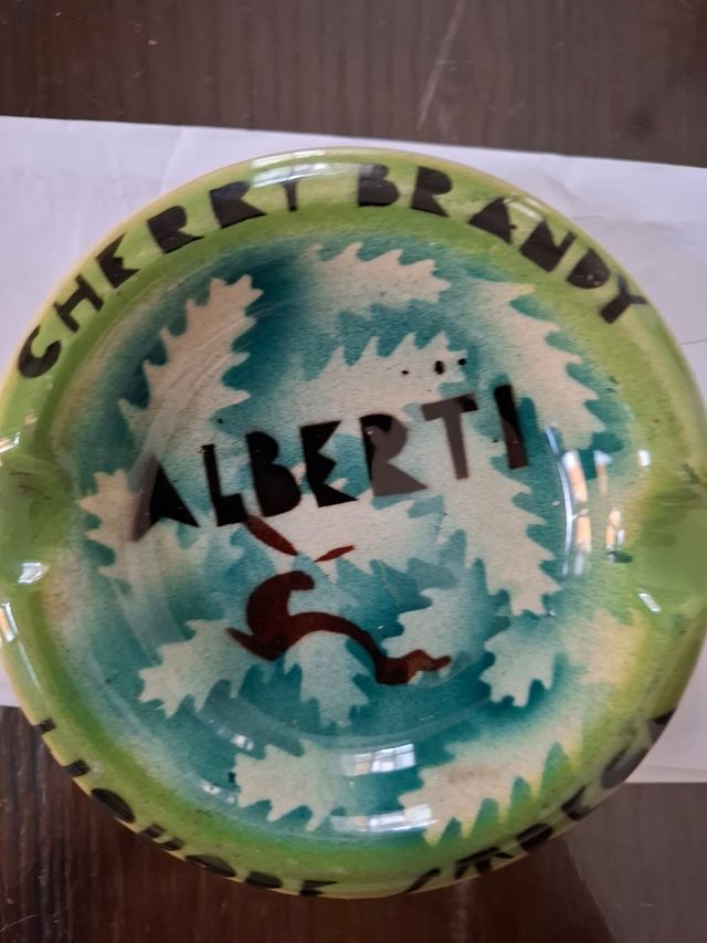 Dettagli del prodottoBellissima ceneriera vintage del marchio Alberti, raffigurante il famoso liquore Strega. E' un pezzo unico e originale, perfetto per collezionisti o amanti degli oggetti retrò. Diametro:13 cm circa. Ha una minuscola seccatura come da foto