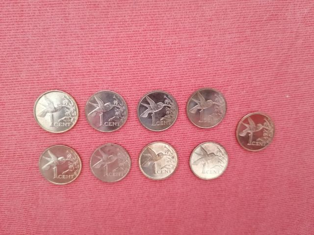 9 piccoli centesimi di Trinidad e Tobago, Caraibi, Caribbean.