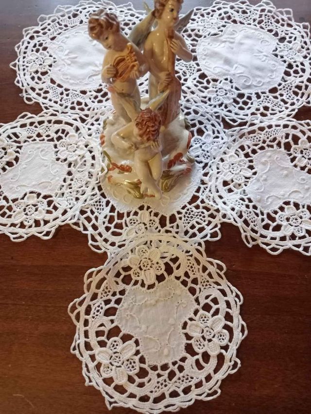 Centrini n. 6 in pizzo ricamati Burano - 100% Lino
