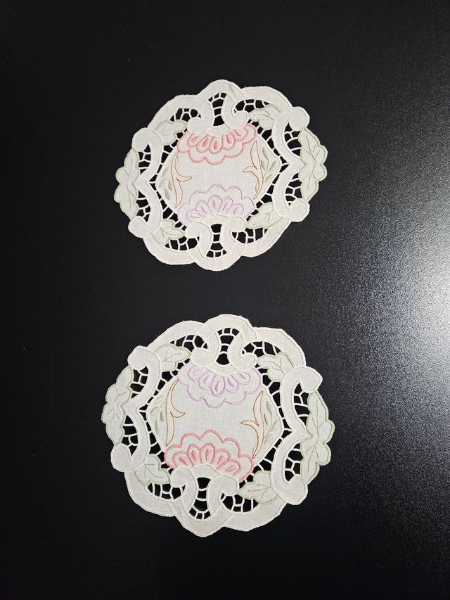 Centrini ritagliati e ricamati a mano.