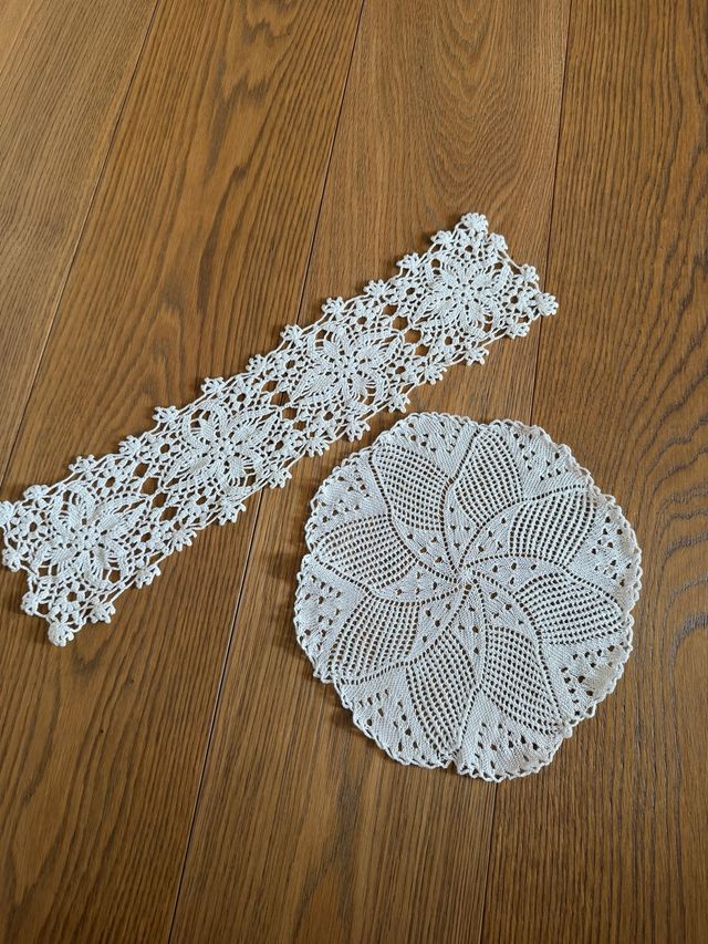 Centrini cotone- bianco- come da foto - centrino rettangolare misure cm 49 x cm 12 / centrino rotondo diametro cm 26