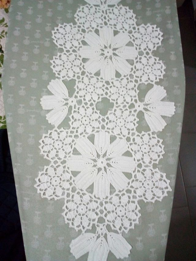 centrino centro tavola fatto a mano con uncinetto fillo di cotone,nuovo, colore bianco, misure 80x35cm, bellissimo.