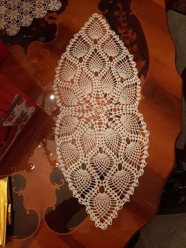 Centrino fatto a mano in cotone colore bianco Misura 69x28 cm