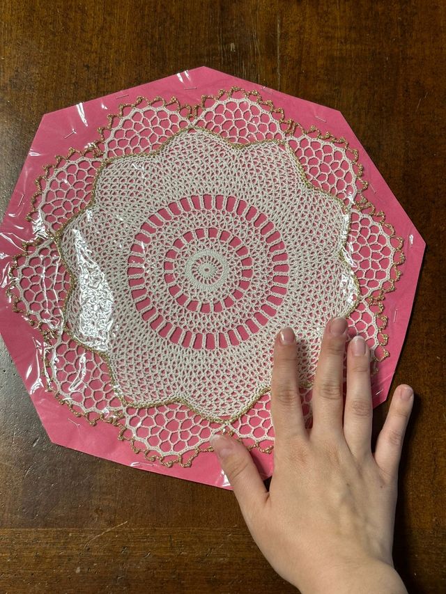 Centro tavola eseguito da monache in clausura. misura 27 cm. Bianco e oro.
