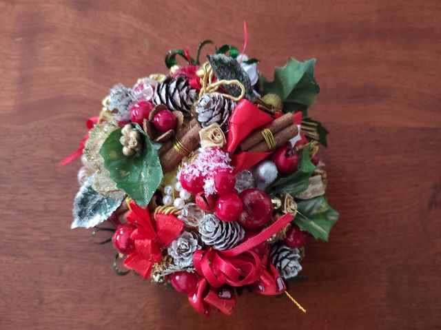 Centrotavola realizzato a mano , usate pugnette naturali, la base è in polistirolo .