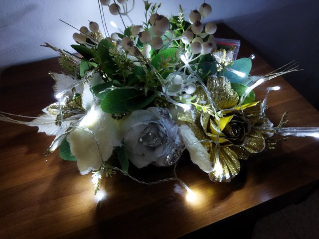 Centro tavola decorato natalizio, vari colori, con base in ceramica Beige, e lucine a led batterie stilo non incluse. Nuovo
