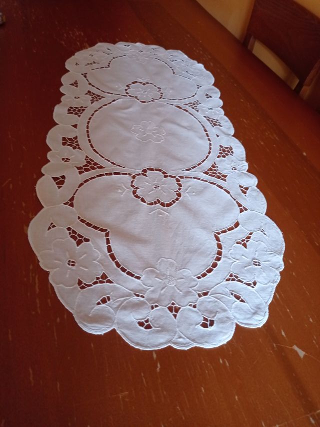 completamente ricamato e smerlato a mano come si faceva una volta. Centrotavola vintage in ottimo stato 83*38
