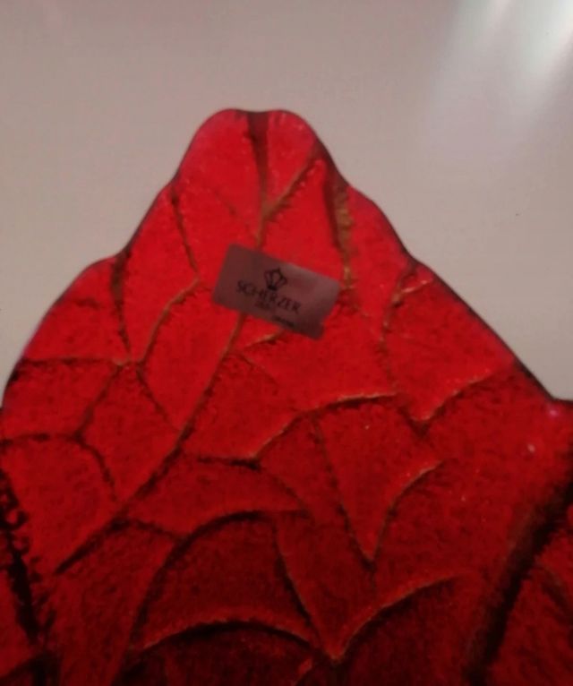 Centrotavola rosso in vetro a forma di foglia marca Scherzer. Come nuovo