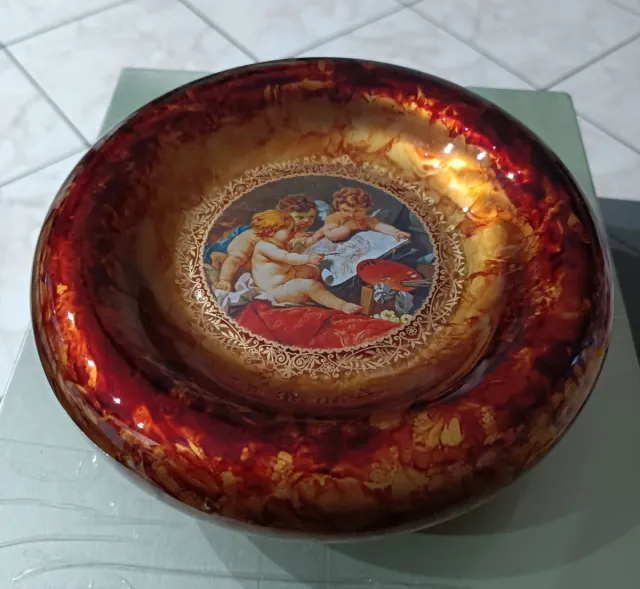 Dettagli del prodottoElegante centrotavola svuotatasche in vetro di Murano, con decorazione raffigurante putti. Un pezzo unico per arredare la tua casa.