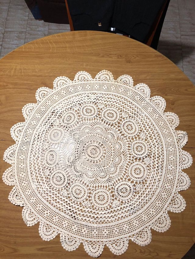 Dettagli del prodottocentrotavola tondo di diamatro 77 cm fatto a mano all’uncinetto Misure del prodotto
