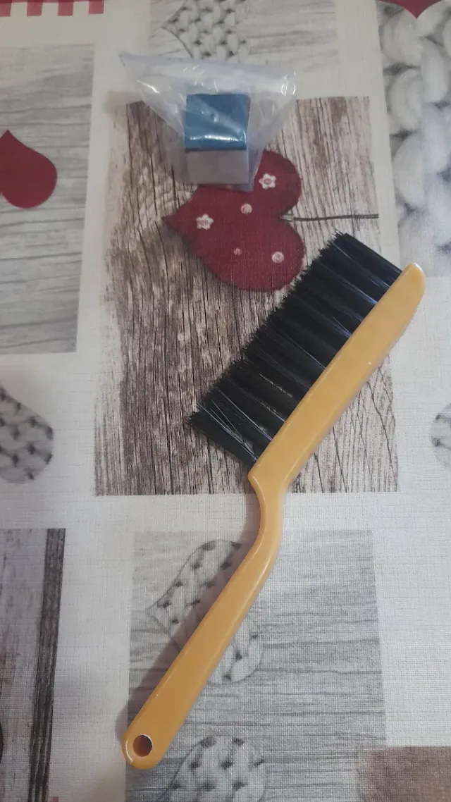 Dettagli del prodottoSet di pennelli e gessetti per la manutenzione dei tavoli da biliardo e del tavolo. Gessetto blu nella sua confezione. La descrizione è stata tradotta automaticamente.