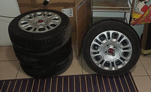 Dettagli del prodottoSet di 4 cerchi in ferro originali per Fiat Panda di terza serie, completi di copricerchi.e gomme