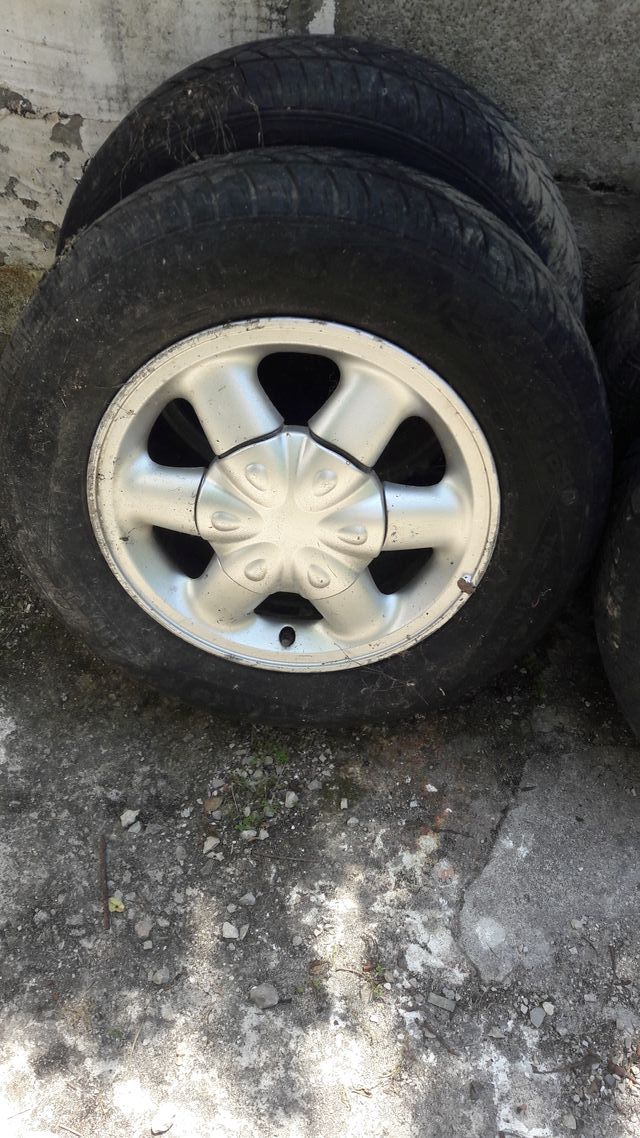 Dettagli del prodottoN°.4 cerchi in lega non danneggiati nè deformati con relative borchie i pneumatici sono già smontati, li vendo x inutilizzo distanza fori cm 7 come da foto erano montati su -Renault megane vanno anche su opel ecc.- prezzo € 40 non trattabile