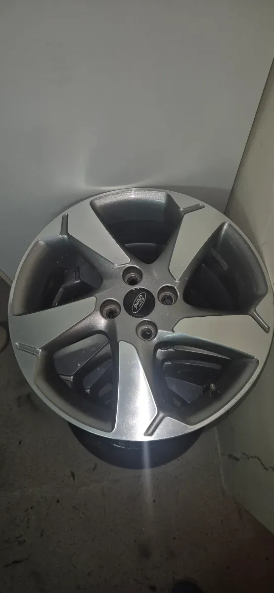 Vendo un treno completo (4 pezzi) di bellissimi cerchi in lega originali Ford, design sportivo a 5 razze sdoppiate, finitura bicolore (Argento e Antracite).