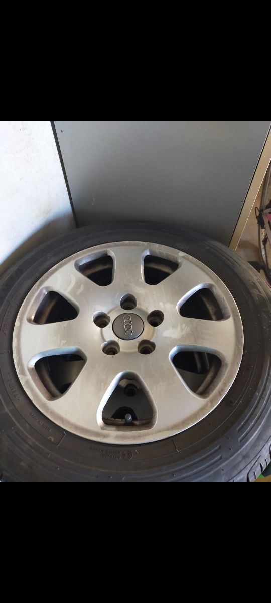Vendo cerchi in lega r15 per audi. Le gomme sono vecchie quindi consiglio di cambiarle.