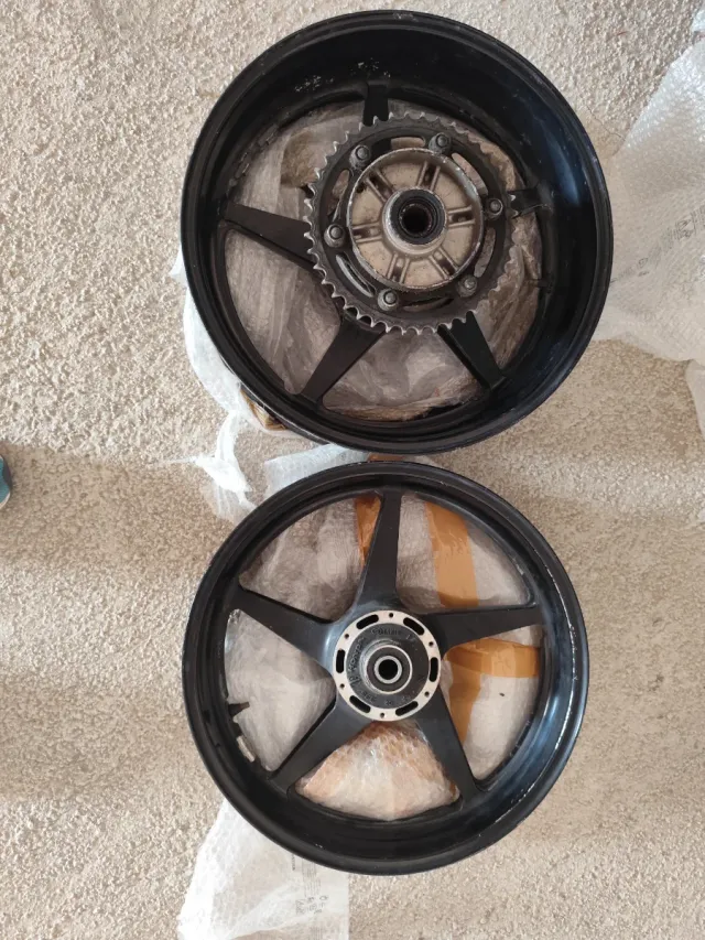 Coppia di cerchi per moto VTR SP2. - Cerchio anteriore. - Cerchio posteriore con corona.