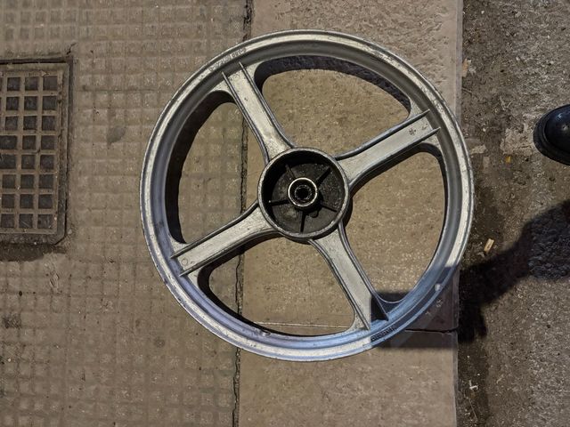 Cerchio anteriore per Piaggio SI in buone condizioni. - Colore argento. - 4 razze. - Usato, ma in discrete condizioni.