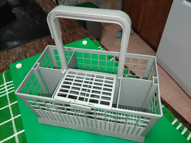 Dettagli del prodottoCestino organizzatore in plastica grigio per lavastoviglie. Dotato di maniglia per facilitare il trasporto e vari scomparti per posate e utensili. Capacità per 16 servizi. Materiale: plastica. Colore: grigio. Design con scomparti. La descrizione è stata tradotta automaticamente.