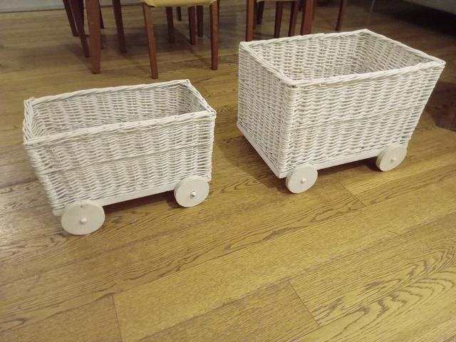 Dettagli del prodottoDue ceste diverse misure per oggetti e giochi - piccola 42×21 ×21; diametro ruote 10 cm prezzo cesta grande euro 20,00 Misure del prodotto