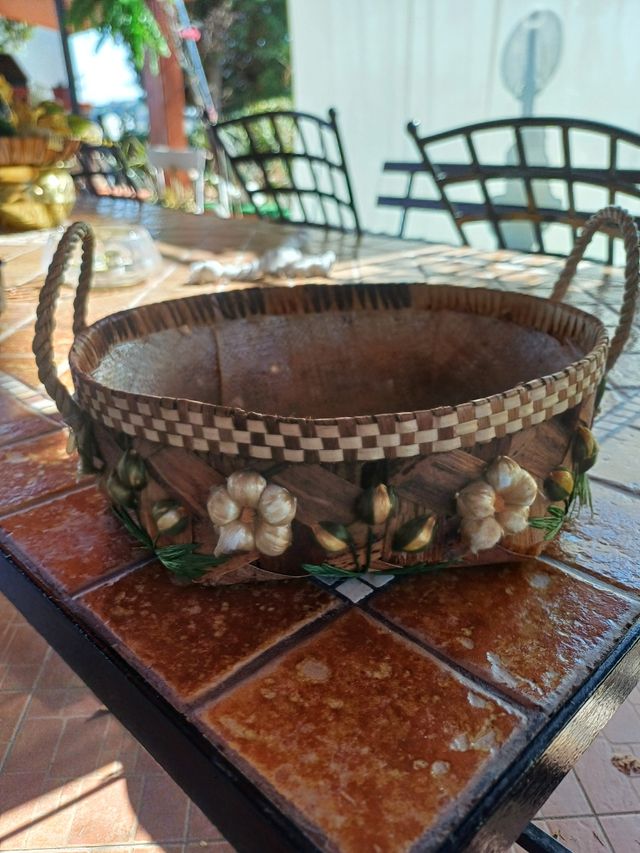 Bellissimo cestino ovale in vimini e fiori con Manici foderato dentro .