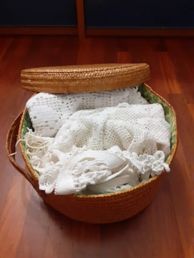 Cesto con pizzi in vimini e tessuto