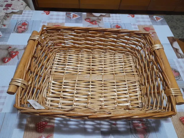 Cesto decorativo in vimini e legno 50x40x12cm