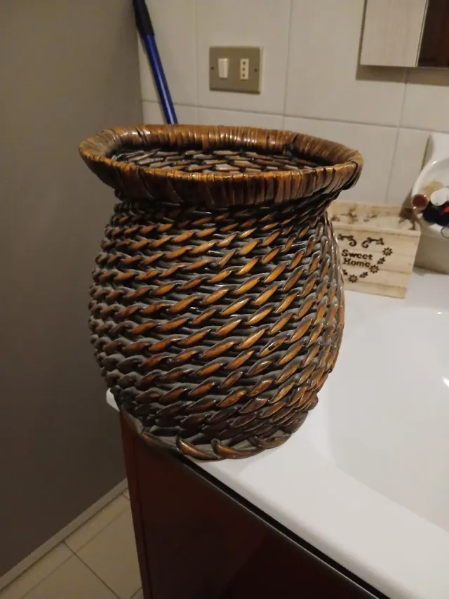 Dettagli del prodottoElegante cesto realizzato in vimini intrecciato, perfetto per aggiungere un tocco naturale alla tua casa. A forma di vaso .ideale porta piantina .fiori non veri .come centro mobili tettoia mansarta taverna cucina anche allesterno