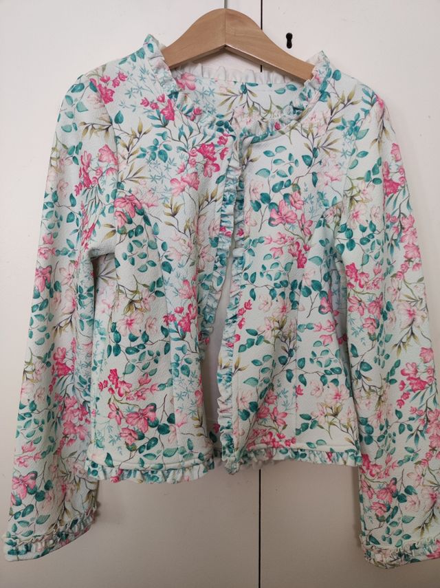 Dettagli del prodottoGiacca sottile per ragazze del marchio Charanga T 10 anni. Non ha bottoni o altro da annodare tranne una clip sulla parte anteriore del collo. La descrizione è stata tradotta automaticamente.