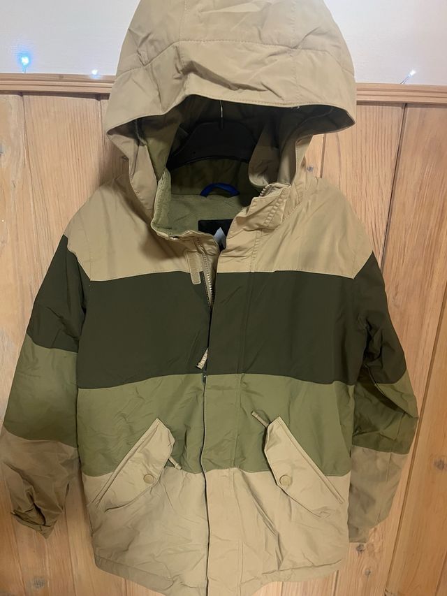 Dettagli del prodottoSet di giacca e pantalone da sci o snowboard per bambini della marca Burton. Ideale per godersi la neve con comfort e stile. Taglia 10 anni. - Design a righe in toni terra e verde. - Cappuccio integrato nella giacca. - Tasche frontali con patta e bottone. La descrizione è stata tradotta automaticamente.