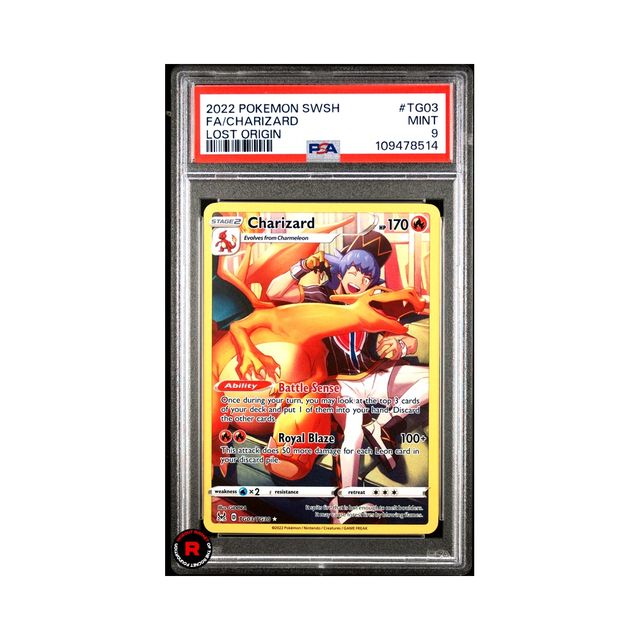 Dettagli del prodottoCarta Pokemon Charizard #TG03 dalla serie Lost Origin, certificata PSA 9 Mint.