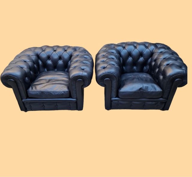 Dettagli del prodottooriginale inglese Cherfield in collaborazione con brand di eccellenza manifattura italiana Poltrona Frau , pelle morbidissima nera composizione due poltrone prezzo per tutte