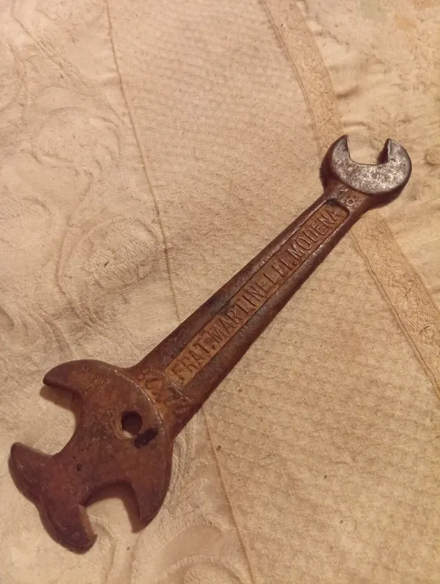 Dettagli del prodottoChiave inglese vintage, un pezzo da collezione per appassionati di auto e moto d'epoca.