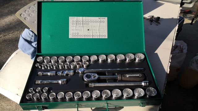 COMPOSIZIONE: 39 Chiavi a bussola, poligonali, no 50: ap. 10; 11; 12; 13; 14; 15; 16; 17; 18; 19; 20; 21; 22; 23; 24; 25; 26; 27; 28; 30; 32; 34 mm - no 50a: ap. 3/8; 7/16; 1/2; 9/16; 19/32; 5/8; 11/16; 3/4; 25/32; 13/16; 7/8; 15/16; 1; 1 1/16; 1 1/8; 1 3/16; 1 1/4''