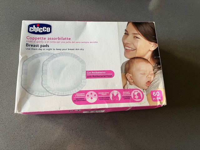 Dettagli del prodottoConfezione di coppette assorbilatte Chicco, ideali per mantenere la pelle del seno asciutta giorno e notte.