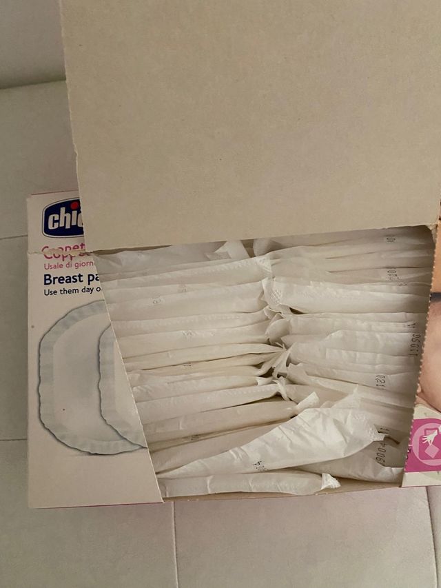 Coppette assorbilatte Chicco. confezionate singolarmente. pacco aperto, 50 pezzi inclusi
