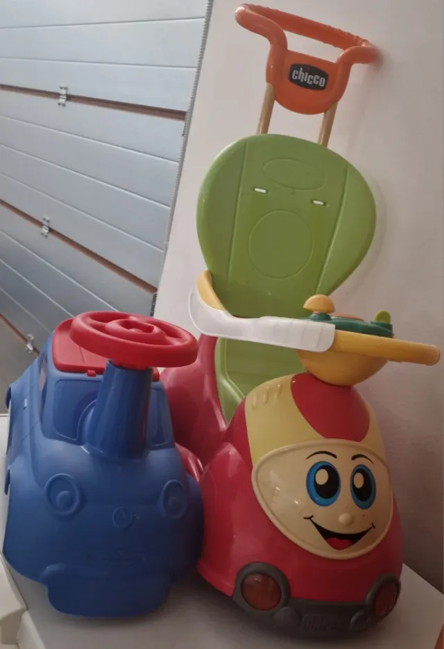 Triciclo primi passi Chicco, ideale per i primi passi. Con maniglione e protezione anticaduta, smontabili con la crescita. Effetti sonori funzionanti, in più, una macchinetta cavalcabile ( 500) pari al nuovo.