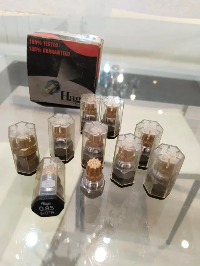 Dettagli del prodottoSi vendono gomme per caldaia a gasolio del marchio Hago. - Modello: 0.85 60°B - Include confezione originale e protezioni individuali per ogni gomma. - Vengono vendute 10 unità in totale. La descrizione è stata tradotta automaticamente.