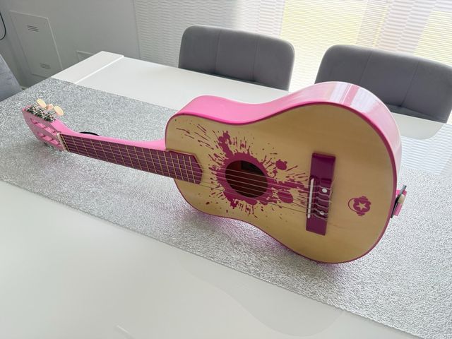 Chitarra per bambini, rosa con decorazioni. Perfetta per iniziare a suonare! - Chitarra acustica di piccole dimensioni. - Colore rosa con decorazioni a spruzzo rosa scuro. - Ideale per bambini.
