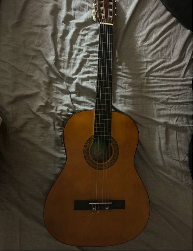 Chitarra classica in legno con finitura lucida. - Corde in nylon. - Tastiera in palissandro. - Meccaniche dorate.