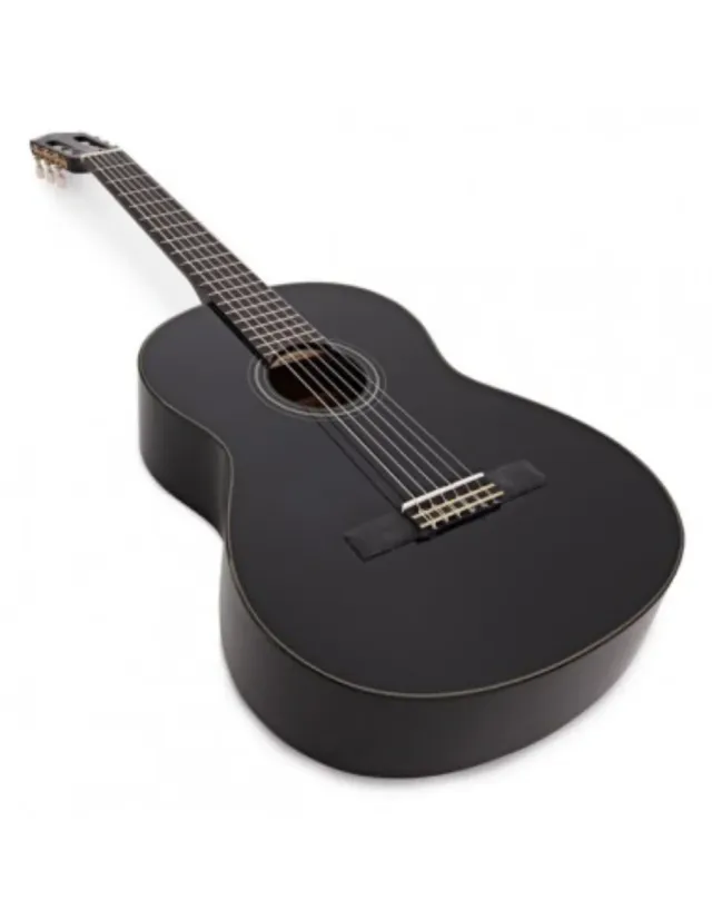 Chitarra classica di colore nero. - Corpo in legno. - Sei corde. - Manico in legno con tastiera.