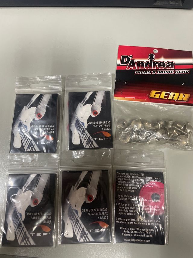 Dettagli del prodottoChiusure di sicurezza per chitarre e bassi del marchio Tef caucho. 5 pacchetti singoli a 2,50€ ciascuno. Ogni pacchetto contiene 2 unità. Ferma-cavi a 0,50€ ciascuno. La descrizione è stata tradotta automaticamente.