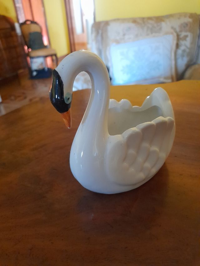 Cigno in ceramica misure lughezza 0.10 cm; altezza fino alla testa 0.12 cm. Ha una lieve crepina nel retro causata dal tempo ma non è rotto.