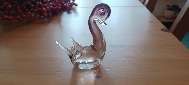 Vintage anni'80. Souvenir. Cigno in vetro di Murano. Sulla base è visibile il segno del taglio del vetro a fine lavorazione. Vetro trasparente con sfumature violacee . In perfetto stato. Misure e dettagli in foto, guardarle tutte. Made in Italy.