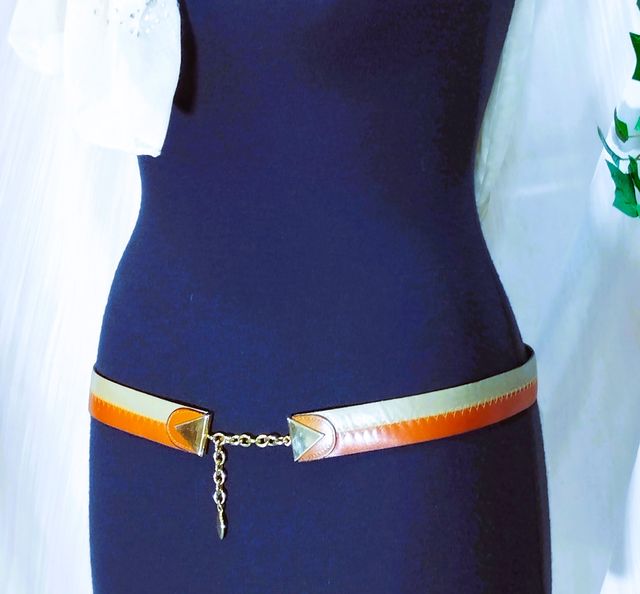 Cintura bicolor Vintage ecopelle catenella dorata
