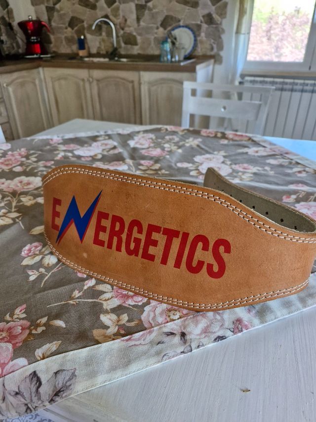 Dettagli del prodottoCintura da palestra Energetics, in pelle color cuoio chiaro.